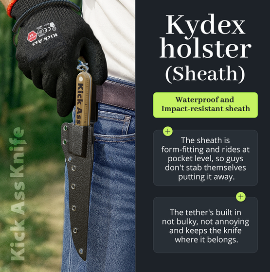 Amazon Listing: The design prioritizes clear, close-up imagery to showcase material quality. By keeping text minimal and strategically placed, the customer can instantly see the "Kick Ass" branding and tactile details without distraction.